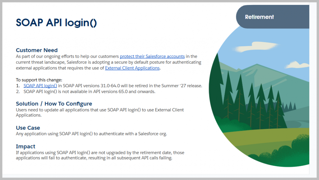 Action: Need to upgrade all your enterprise API login to get the latest version. This has potential impacts to your integration using Soap API and so please make sure you upgrade your API versions and test for potential impacts.