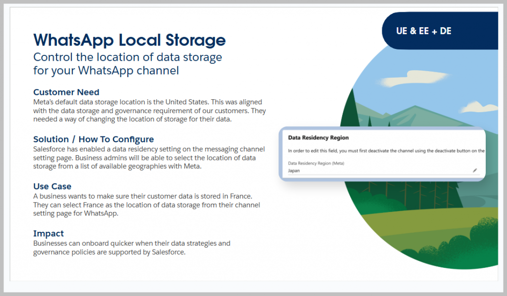 You can manage WhatsApp data storage based on the country of choice, which will meet compliance needs.
