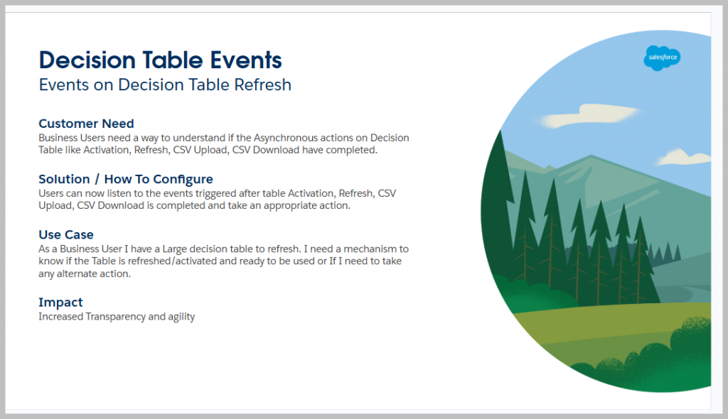 This feature will be highly beneficial, as it allows admins and devs to notify business users when business rules engine changes are completed, based on CSV uploads and refresh. This can also prevent problems if we do a transformation in Salesforce on business rules.